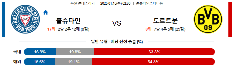 홀슈타인킬 대 도르트문트 분데스리가 01월15일 맞대결 생중계, 스포츠중계, 스포츠분석
