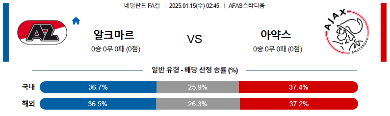알크마르 대 아약스 FA컵 01월15일 맞대결 생중계, 스포츠중계, 스포츠분석