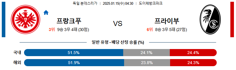 프랑크푸르트 대 프라이부르크 분데스리가 01월15일 맞대결 생중계, 스포츠중계, 스포츠분석