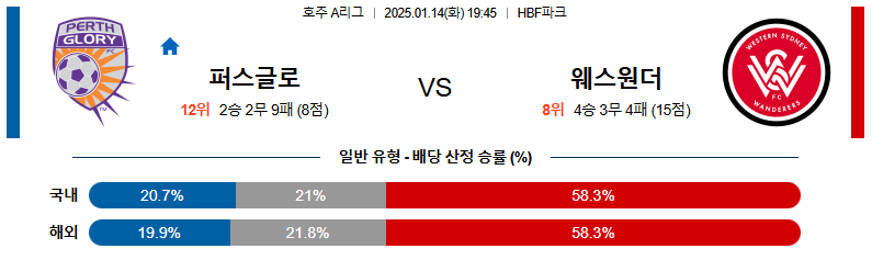 퍼스글로리 대 웨스턴시드니 호주1부 01월14일 맞대결 생중계, 스포츠중계, 스포츠분석