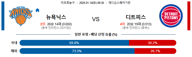 뉴욕닉스 대 디트로이트 NBA 01월14일 맞대결 생중계, 스포츠중계, 스포츠분석