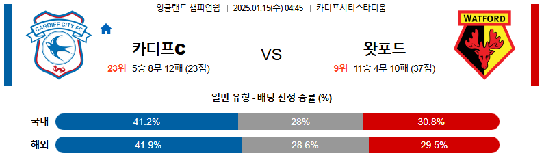 카디프시티 대 왓포드 잉글랜드챔피언쉽 01월15일 맞대결 생중계, 스포츠중계, 스포츠분석
