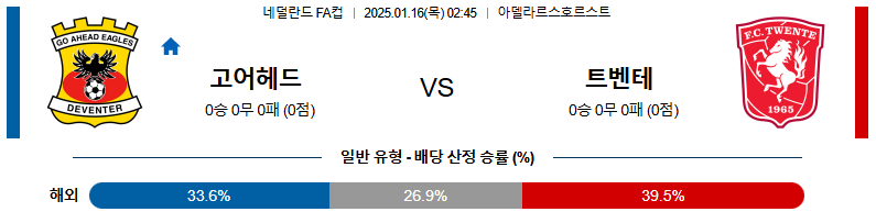 고어헤드 대 트벤테 네덜란드FA컵 01월16일 맞대결 생중계, 스포츠중계, 스포츠분석