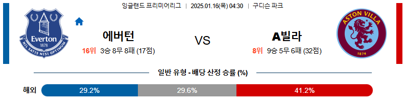 에버튼 대 아스톤빌라 EPL 01월16일 맞대결 생중계, 스포츠중계, 스포츠분석
