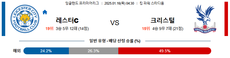 레스터시티 대 팰리스 EPL 01월16일 맞대결 생중계, 스포츠중계, 스포츠분석