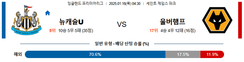뉴캐슬 대 울버햄튼 EPL 01월16일 맞대결 생중계, 스포츠중계, 스포츠분석