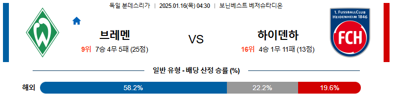 브레멘 대 하이덴하임 분데스리가 01월16일 맞대결 생중계, 스포츠중계, 스포츠분석