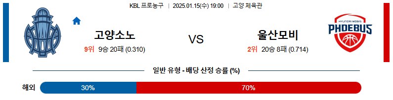 고양소노 대 울산현대모비스 KBL 01월15일 맞대결 생중계, 스포츠중계, 스포츠분석