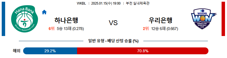 하나은행 대 우리은행 WKBL 01월15일 맞대결 생중계, 스포츠중계, 스포츠분석