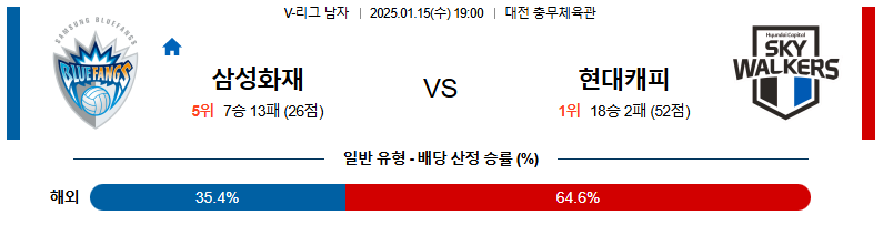 삼성화재 대 현대캐피탈 V리그 01월15일 맞대결 생중계, 스포츠중계, 스포츠분석
