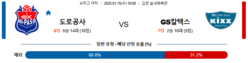 도로공사 대 GS칼텍스 V리그(여) 01월15일 맞대결 생중계, 스포츠중계, 스포츠분석