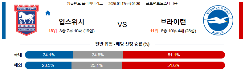 입스위치 대 브라이튼 EPL 01월17일 맞대결 생중계, 스포츠중계, 스포츠분석