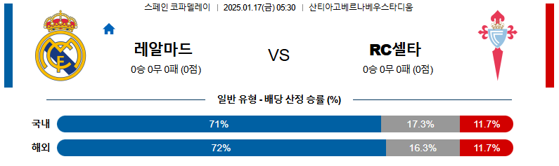 레알마드리드 대 셀타비고 스페인코파델레이 01월17일 맞대결 생중계, 스포츠중계, 스포츠분석