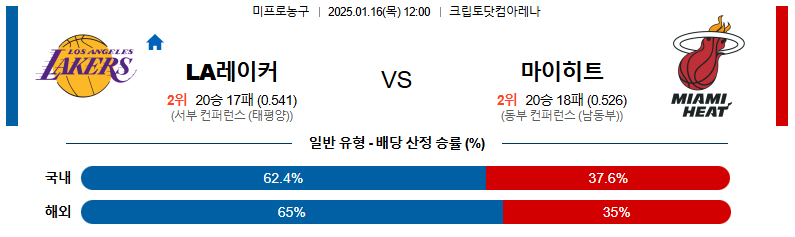 LA레이커스 대 마이애미 NBA 01월16일 맞대결 생중계, 스포츠중계, 스포츠분석