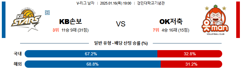 KB손해보험 대 OK저축은행 V리그 01월16일 맞대결 생중계, 스포츠중계, 스포츠분석