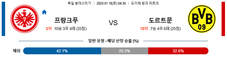 프랑크푸르트 대 도르트문트 분데스리가 01월18일 맞대결 생중계, 스포츠중계, 스포츠분석