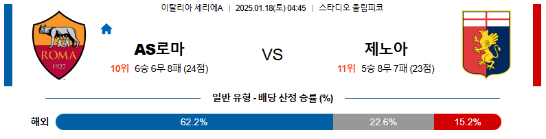 로마 대 제노아 세리에A 01월18일 맞대결 생중계, 스포츠중계, 스포츠분석