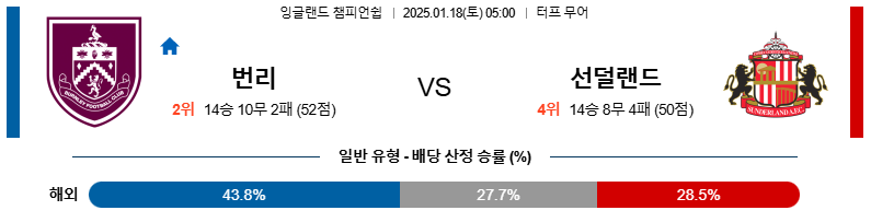 번리 대 선덜랜드 잉글랜드챔피언쉽 01월18일 맞대결 생중계, 스포츠중계, 스포츠분석