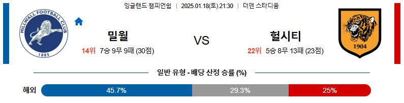 밀월 대 헐시티 잉글랜드챔피언쉽 01월18일 맞대결 생중계, 스포츠중계, 스포츠분석