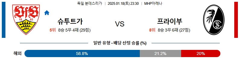 슈투트가르트 대 프라이부르크 분데스리가 01월18일 맞대결 생중계, 스포츠중계, 스포츠분석