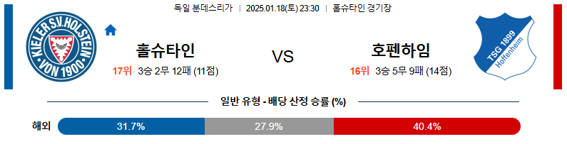 홀슈타인킬 대 호펜하임 분데스리가 01월18일 맞대결 생중계, 스포츠중계, 스포츠분석