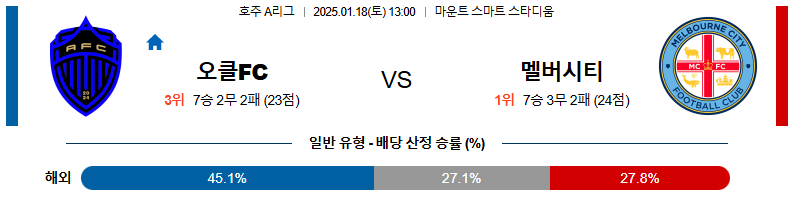 오클랜드 대 멜버른시티 호주1부 01월18일 맞대결 생중계, 스포츠중계, 스포츠분석
