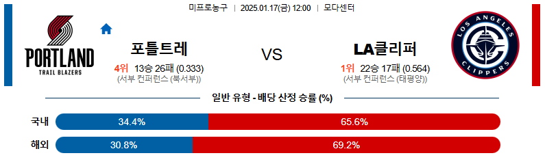 포틀랜드 대 LA클리퍼스 NBA 01월17일 맞대결 생중계, 스포츠중계, 스포츠분석