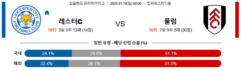레스터시티 대 풀럼 EPL 01월19일 맞대결 생중계, 스포츠중계, 스포츠분석
