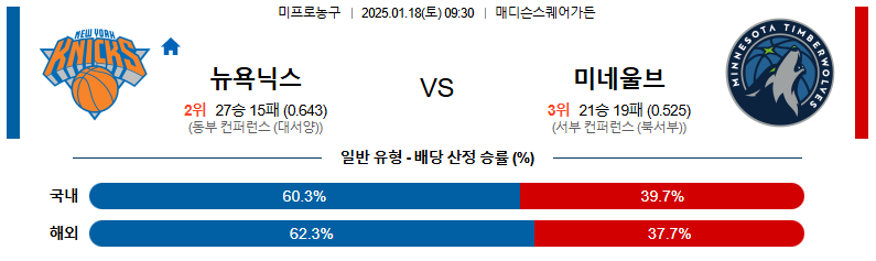 뉴욕닉스 대 미네소타 NBA 01월18일 맞대결 생중계, 스포츠중계, 스포츠분석
