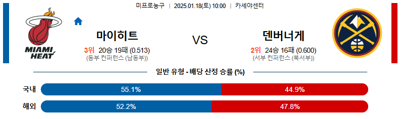 마이애미 대 덴버 NBA 01월18일 맞대결 생중계, 스포츠중계, 스포츠분석