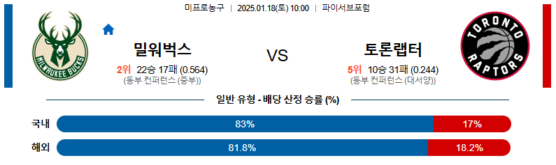 밀워키 대 토론토 NBA 01월18일 맞대결 생중계, 스포츠중계, 스포츠분석