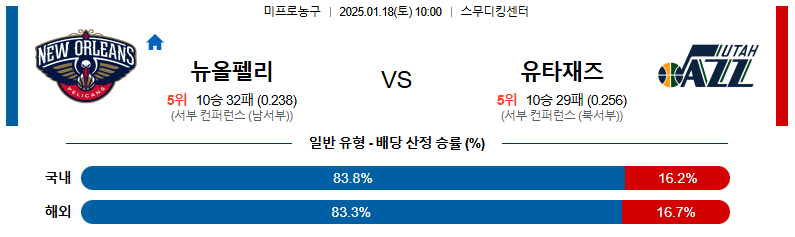 뉴올리언스 대 유타 NBA 01월18일 맞대결 생중계, 스포츠중계, 스포츠분석