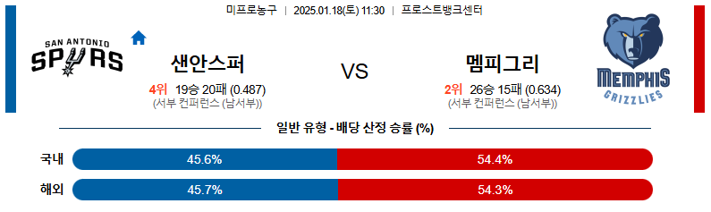 샌안토니오 대 멤피스 NBA 01월18일 맞대결 생중계, 스포츠중계, 스포츠분석