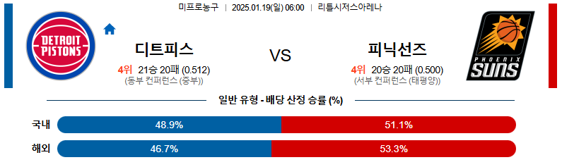 디트로이트 대 피닉스 NBA 01월19일 맞대결 생중계, 스포츠중계, 스포츠분석