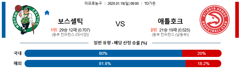 보스턴 대 애틀란타 NBA 01월19일 맞대결 생중계, 스포츠중계, 스포츠분석