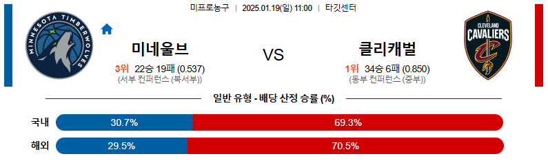 미네소타 대 클리블랜드 NBA 01월19일 맞대결 생중계, 스포츠중계, 스포츠분석
