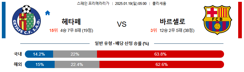헤타페 대 바르셀로나 라리가 01월19일 맞대결 생중계, 스포츠중계, 스포츠분석