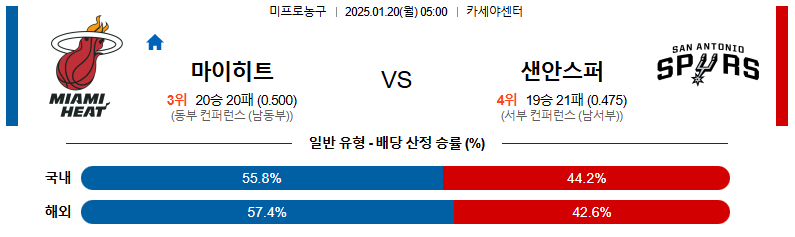마이애미 대 샌안토니오 NBA 01월20일 맞대결 생중계, 스포츠중계, 스포츠분석