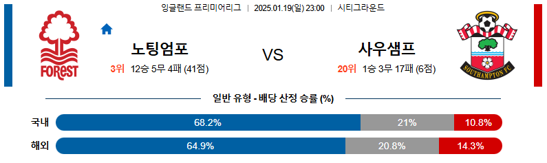 노팅엄 대 사우샘프턴 EPL 01월19일 맞대결 생중계, 스포츠중계, 스포츠분석