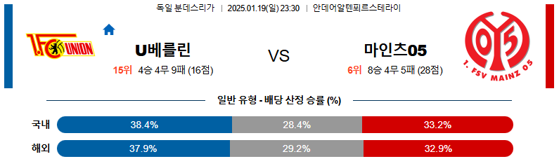 우니온베를린 대 마인츠 분데스리가 01월19일 맞대결 생중계, 스포츠중계, 스포츠분석