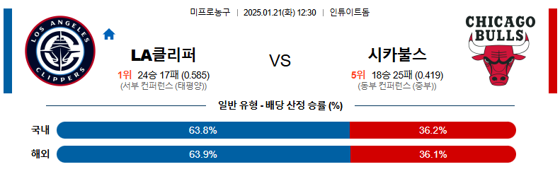 LA클리퍼스 대 시카고 NBA 01월21일 맞대결 생중계, 스포츠중계, 스포츠분석