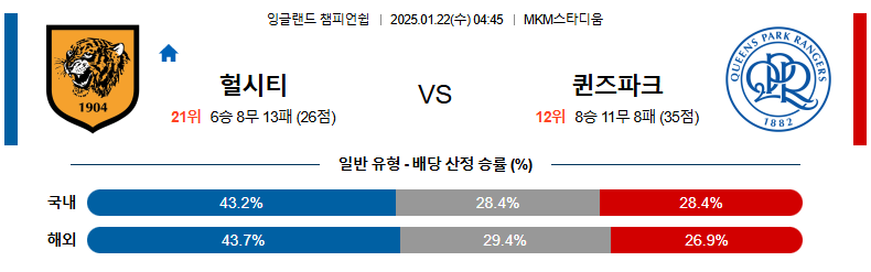 헐시티 대 QPR 챔피언쉽 01월22일 맞대결 생중계, 스포츠중계, 스포츠분석