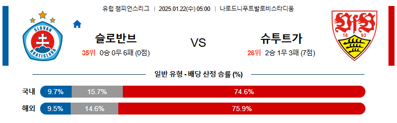 브라티슬라바 대 슈투트가르트 챔피언스리그 01월22일 맞대결 생중계, 스포츠중계, 스포츠분석