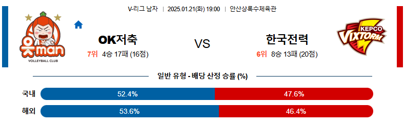 OK저축은행 대 한국전력 V리그 01월21일 맞대결 생중계, 스포츠중계, 스포츠분석