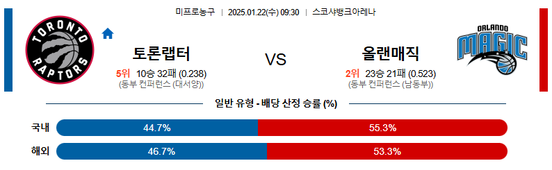 토론토 대 올랜도 NBA 01월22일 맞대결 생중계, 스포츠중계, 스포츠분석