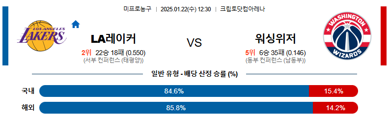 LA레이커스 대 워싱턴 NBA 01월22일 맞대결 생중계, 스포츠중계, 스포츠분석