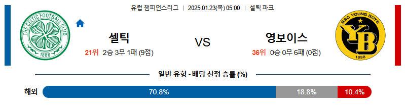 셀틱 대 영보이스 챔피언스리그 01월23일 맞대결 생중계, 스포츠중계, 스포츠분석