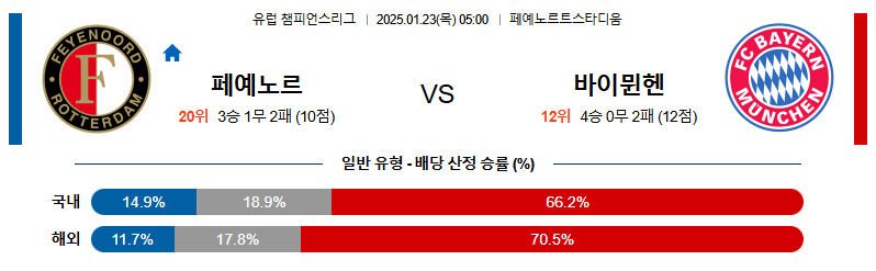 페예노르트 대 바이에른뮌헨 챔피언쉽 01월23일 맞대결 생중계, 스포츠중계, 스포츠분석