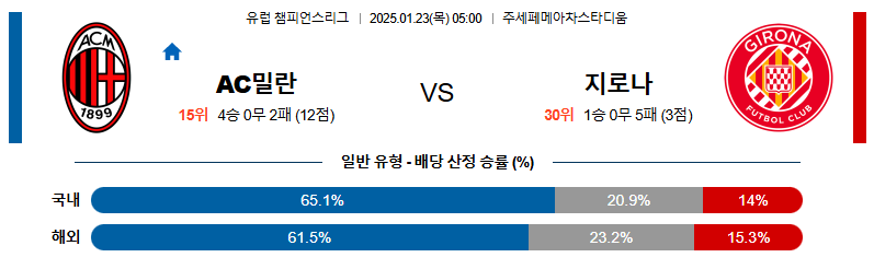 AC밀란 대 지로나 챔피언스리그 01월23일 맞대결 생중계, 스포츠중계, 스포츠분석