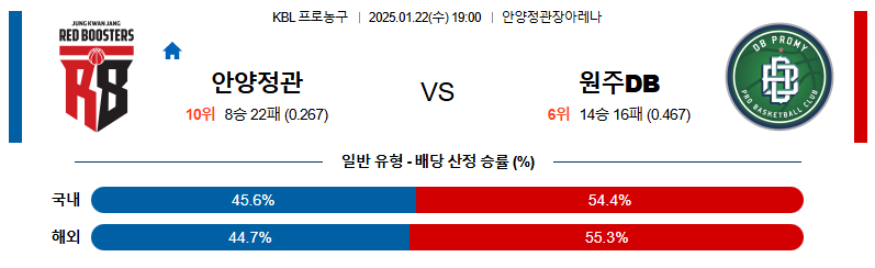 안양정관장 대 원주DB KBL 01월22일 맞대결 생중계, 스포츠중계, 스포츠분석